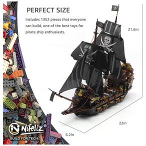 O modelo Nifeliz Black Hawk Pirates Ship consiste em 1352 peças de fácil instalação em etapas numeradas Você pode aproveitar a diversão sem ficar entediado. Este modelo atraente fica deslumbrante em exibição. Suas dimensões foram projetadas para fornecer uma representação fiel do modelo da vida real. Mede mais de 55,88 centímetros de comprimento, 54,86 centímetros de altura e 15,75 centímetros de largura. Este brinquedo de construção gira o leme, muitas decorações de idade, design de abertura múltipla, etc. Um presente perfeito para sua família e amigos. Este conjunto de construção de 1.352 peças desperta a imaginação, oferece diversão infinita para construir e brincar e é um presente cheio de criatividade para feriados, aniversários ou qualquer dia para crianças que gostam de desafios de construção Marca: Não Informado
