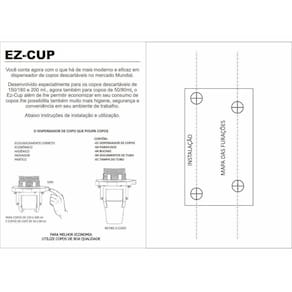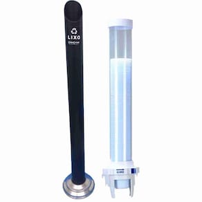 Kit dispensador de copo café ez-cup com alavanca + lixeira preto para descarte copos de cafe Conjunto com 1 dispenser para copos de café 50 à 80ml + sobre o coletor/lixeira para copo descartável de café/cappuccino - preto Dispenser para copos de café 50 à 80ml Nova versão para copos de água, mantendo a proposta de reduzir o desperdício de copos descartáveis. Esta economia pode chegar a 40% usando copos dentro das normas abnt. O ez cup tem as "menores dimensões do mercado" 41,5cm de altura x 9,5cm de profundidade x 9,5cm de largura. Porque utilizar o ez cup - o dispensador de copos mais compacto do mercado. - produto com um sistema inovador, durável, prático e higiênico. - possibilita a retirada de 01 copo por vez. Especificações -ecologicamente correto -econômico -higiênico -inovador -prático Medidas da embalagem - 42,5cm altura - 10cm largura - 10cm comprimento Medidas do dispensador - 41,5cm altura - 9,5cm largura - 9,5cm comprimento - 5,5cm diâmetro do tubo Itens inclusos -1 dispenser de copos café -4 buchas de 5mm -4 parafusos Sobre o coletor/lixeira para copo descartável de café/cappuccino - preto As lixeiras acqua fure são feitas em material durável, na cor preto. A lixeira permite que os copos sejam descartados de maneira simples e sem ocupar espaço extra nas lixeiras comuns. Na cor preto, a lixeira é vendida em tamanho para copos de 50 e 80ml utilizados para café etc.