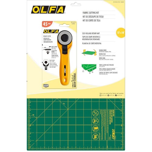 Sobre o kit de corte de tecido OLFA inclui um cortador rotativo de troca rápida de 45 mm e um tapete rotativo de dupla face de 12" x 18" que se recupera. Os tapetes de corte rotativos autocuráveis OLFA devem sempre ser s para evitar danos à superfície de trabalho e prolongar a vida útil da lâmina. O RTY-2/CYEL (45 mm) usa lâminas de reposição OLFA de 45 mm, que cortam até 8 camadas de tecido de algodão. Sobre a OLFA: Desde que Yoshio Okada, fundador da OLFA CORPORATION, inventou o primeiro cortador com lâmina de encaixe do mundo em 1956, a OLFA está comprometida em desenvolver ferramentas de corte manuais práticas e seguras. As lâminas da marca OLFA são feitas com materiais de alta qualidade, forjadas com tecnologias que derivam da fabricação tradicional de espadas, afiadas com tecnologias que dão vida útil à lâmina e, finalmente, acabadas com o artesanato que reúne tudo isso. Os suportes e alças que permitem aos usuários obter o desempenho total de corte dessas lâminas de alta qualidade são projetados, desenvolvidos e fabricados no Japão e submetidos a rigorosas verificações de qualidade durante todo o processo. A OLFA se orgulha da qualidade inabalável de cada produto que fabrica.