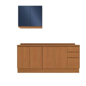 Beleza e qualidade com o kit CB1273 da Cozinha Ciela da Kappesberg. Produzido com corpo MDP de 1,5 cm e frentes em MDF de 1,8 cm , ele garante robustez e um acabamento perfeito. Com balcão e aéreo de 80cm, balcão de pia, de 120cm e tampo, ele possui até sete camadas de pintura. A caixaria e os balcões são em pintura touch na cor canela, com a textura dos veios da madeira, enquanto as portas do aéreo são em azul profundo, com acabamento fosco, unindo conforto e modernidade. O destaque fica para o sistema de amortecimento e as corrediças telescópicas, garantindo qualidade e durabilidade. E para um melhor acabamento, o kit conta com rodapés, mas acompanha as ferragens para ser montado suspenso, garantindo muita praticidade. E os puxadores cava embutidos completam a beleza e o design do produto.