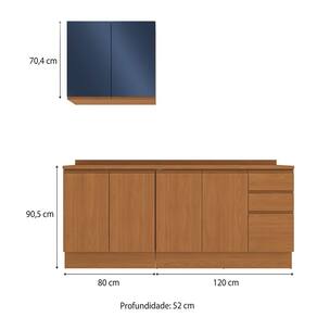 Medida de cada item (A x L x P): Aéreo: 70,4 x 80 x 37,5 / Balcão: 88 x 120 x 52 / Balcão: 88 x 80 x 52/ Tampo: 2,5 x 120 x 52