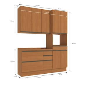 Medida de cada item (A x L x P): Aéreo: 90 x 120 x 37/ Balcão: 88 x 120 x 52 / Kit Forno: 240 x 70 x 52/ Tampo: 2,5 x 120 x 52