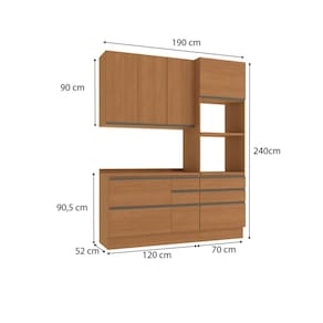 Medida de cada item (A x L x P): Aéreo: 90 x 120 x 37/ Balcão: 88 x 120 x 52 / Kit Forno: 240 x 70 x 52 / Tampo: 2,5 x 120 x 52