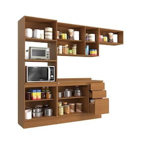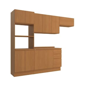 Beleza e qualidade com o Kit CB1269 da Cozinha Ciela da Kappesberg. Produzido com corpo em MDP de 1,5 cm e portas em MDF de 1,8 cm , ele garante robustez e um acabamento perfeito. Composto por 4 peças mais tampo, ele possui até sete camadas de pintura e acabamento touch na cor canela, com a textura dos veios da madeira, perfeita para todos os ambientes. E para um melhor acabamento, ele conta com rodapés, mas acompanha as ferragens para ser montado suspenso. Com amplo espaço, o kit forno permite otimizar espaço na vertical, assim como os demais itens, ideais para organizar louças e mantimentos. O destaque fica para as dobradiças com amortecimento e as corrediças telescópicas, para mais beleza e durabilidade. Os puxadores cava embutidos completam a beleza e o design do produto.