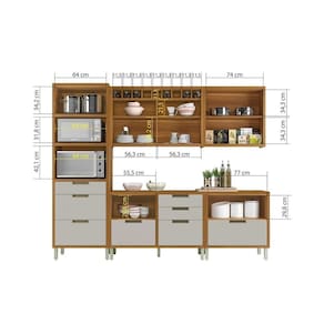 Kit de Cozinha 5 Peças Imperatriz (2 Balcões + 2 Aéreos+ 1 Torre Quente) C5P27 Freijo/Grafite - Nesher - Blush