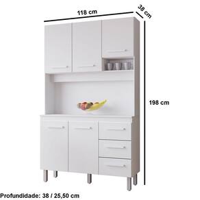Kit De Cozinha 5 Portas 3 Gavetas Com Nicho Vitorina Branco O Kit de Cozinha 5 Portas 3 Gavetas com Nicho Vitorina é a escolha perfeita para quem busca praticidade, elegância e funcionalidade no dia a dia. Com design moderno e acabamento de alta qualidade, ele oferece amplo espaço para organizar utensílios, mantimentos e louças, deixando sua cozinha sempre em ordem. Suas gavetas com corrediças metálicas garantem abertura suave, enquanto o nicho aberto é ideal para acomodar eletrodomésticos ou itens decorativos. Um conjunto completo que une beleza, durabilidade e eficiência, tornando sua cozinha muito mais prática e acolhedora. Dimensões da Cozinha Compacta 5 Portas 3 Gavetas com Nicho: Altura: 198 cm Largura: 118 cm Profundidade: 38/25,50 cm