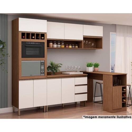 CARACTERÍSTICAS DE MÓVEIS Tipo de Estrutura do Móvel - MDP Características de móveis - Armário Aéreo - Gabinete com Tampo Quantidade de Gavetas - 3 Diferenciais da Gaveta - c/ Corrediças Telescópicas Quantidade de Portas - 9 Portas de Abrir Quantidade de nichos - 1 nicho Diferenciais dos Nichos - Nicho p/ Forno - Nicho p/ Microondas - Nicho Decorativo Garantia - 3 meses