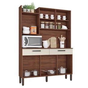 O Kit Cozinha irá se tornar o charme de sua cozinha, seu design diferenciado dispõe de um nicho para decoração superior podendo ser utilizado para vasos, flores e outros. Tem a sua disposição de um grande espaço para Eltrodomésticos podendo acomodar um micro-ondas, sua matéria prima valoriza o meio ambiente sendo feita de madeira de reflorestamento.