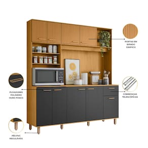 Transforme sua cozinha com elegância, praticidade e muito estilo com o Kit de Cozinha Núria. Com design contemporâneo e funcional, ele combina a beleza do acabamento Freijó com sofisticação, criando um ambiente acolhedor e moderno.