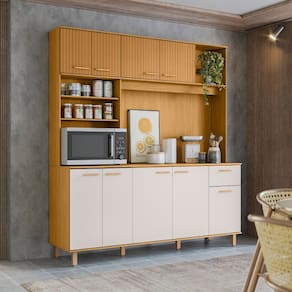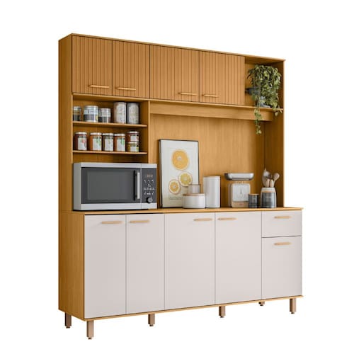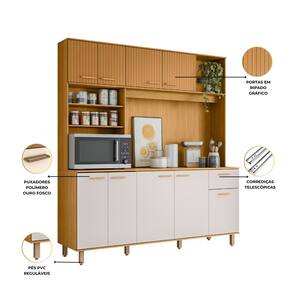 Transforme sua cozinha com elegância, praticidade e muito estilo com o Kit de Cozinha Núria. Com design contemporâneo e funcional, ele combina a beleza do acabamento Freijó com sofisticação, criando um ambiente acolhedor e moderno.