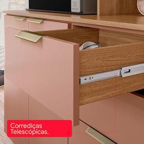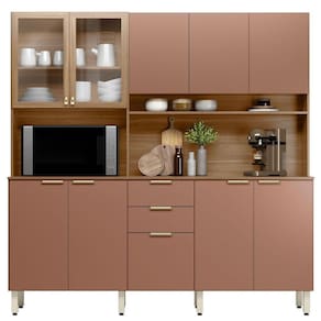 Se você deseja dar um toque de sofisticação à sua cozinha, a escolha ideal é o Kit Cozinha Amora. Com design em linhas retas, amplas dimensões e o acabamento TX, o Kit Cozinha Amora será o ponto de destaque do ambiente. No Kit Cozinha Amora você pode armazenar inúmeros utensílios nas gavetas, panelas e eletrosportáteis nas portas de giro com prateleiras internas e também. As portas de giro com vidro incolor proporcionam um visual moderno ao móvel. No Kit Cozinha Amora, tem espaço dedicado ao forno elétrico ou microondas para mais praticidade no dia a dia. E não acabou! O Kit Cozinha Amora tem um nicho para deixar sempre à mão seus temperos prefereidos, snacks ou para lindas decoraçãoes. A experiência com o Kit Cozinha Amora fica ainda mais incrível com a ampla bancada, que você pode usar para auxiliar no preparo de alimentos. Quer uma dica? A bancada é incrível para montar um cantinho do café e deixar o seu café da manhã ainda mais especial. E para mais durabilidade, o Kit Cozinha Amora é equipado com pés com regulagem de altura para nivelar o móvel em relação ao piso e proteger o móvel da umidade. Com o Kit Cozinha , sua cozinha bonita, você feliz e a vida mais prática.