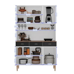 - Tampo em MDP 15mm com pintura UV: Superfície lisa, com acabamento sofisticado e fácil de limpar, ideal para o preparo de alimentos ou apoio de utensílios.