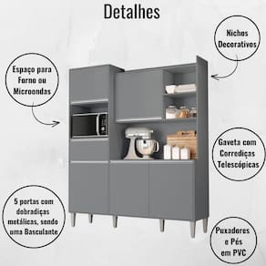 Kit de Cozinha Compacta 160cm Isabel com 5 Portas - AJL Móveis