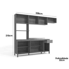 Dimensões(Cm): Comprimento(Profundidade): 52cm x Largura: 258cm x Altura: 210cm