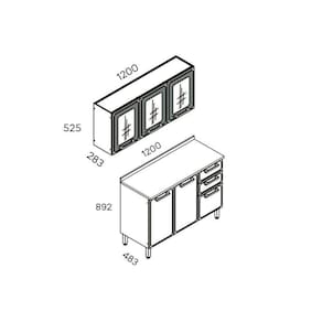 Cozinha Completa Estilo 2 Peças (1 Armário + 1 Balcão) C2P13 Cinza/Grafite - Bertolini Abaixo segue os produtos do KIT: Cozinha Completa Estilo 2 Peças (1 Armário + 1 Balcão) C2P13 Cinza/Grafite - Bertolini Balcão de Cozinha Estilo 7124 3 Portas e 2 Gavetasc/Tampo 120cm Cinza/Grafite - Bertolini
