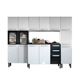 Cozinha Completa Evidence 4 Peças (1 Armário + 1 Balcão + 2 Paneleiros) C4P43 Branco/Preto - Bertolini