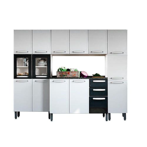 Kit De Cozinha Completa 4 Peças Evidence (1 Armário + 1 Balcão + 2 Paneleiros) C4p43 Branco/preto - Bertolini
