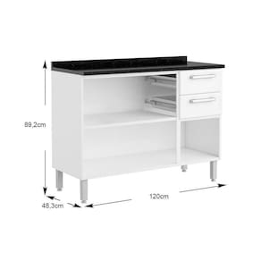 Balcão de Cozinha Gabinete c/Pia Múltipla 6015 3 Portas e 2 Gavetas 105cm Branco - Bertolini