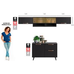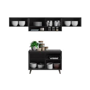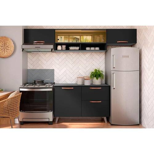 Cozinha Compacta Thela Emília 4 Peças c/ Vidro e Nicho (3 Armários + 1 Balcão) Preto - Telasul