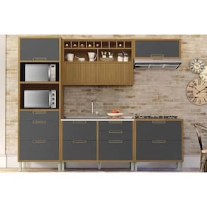 Cozinha Completa Imperatriz 5 Peças (2Balcões+2Aéreos+1Torre Quente) C6P46 Freijo/Grafite - Nesher