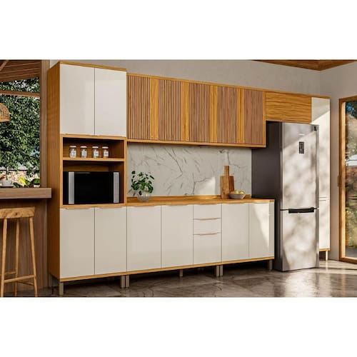 Cozinha Completa Sauvignon 7 Peças (3Aéreos+2Balcões+1Paneleiro+1TorreQuente) C7P91 Amendoa/Off White - Ronipa