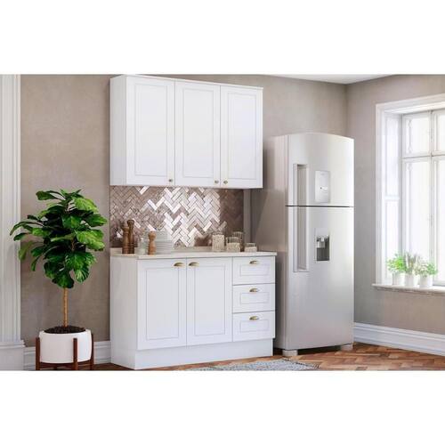 Balcão de Cozinha Americana p/ Pia c/ 2 Portas e 3 Gavetas s/Tampo 120cm Branco - Henn