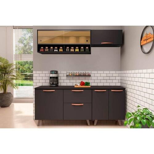Cozinha Compacta Thela Emília 4 Peças c/ Vidro e Nicho (2 Armários + 2 Balcões) Preto - Telasul Marca: Telasul