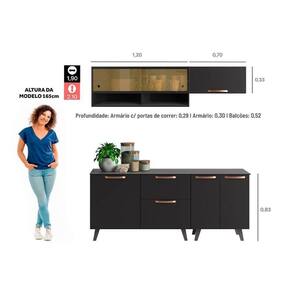 Kit De Cozinha Modulada 4 Peças Thela Emília C/ Vidro E Nicho (2 Armários + 2 Balcões) Preto - Telasul