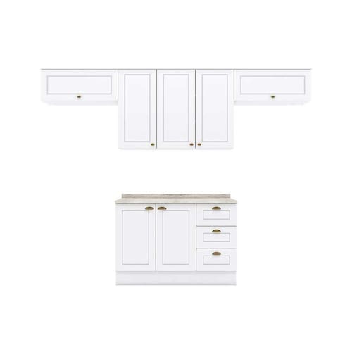 Cozinha Completa Americana 5 Peças (3 Armários + 1 Balcão + 1 Complemento) C5P11 Branco - Henn