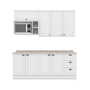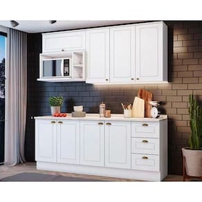 Kit De Cozinha Modulada 7 Peças Americana (2 Aéreos. 2 Balcões, 1 Nicho, 2 Complementos ) Branco - Henn