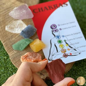 Kit De Cristais - 7 Chackras BrutoKit de Cristais Bruto - 7 Chakras, contém 7 pedras naturais brutas com aproximadamente 2 a 3cm, acompanha card explicativo sobre as propriedades terapêuticas e energéticas das pedras.Cada cristal corresponde a um chackra, que vão lhe auxiliar a equilibrar o seu campo vibracional trabalhando os 7 principais pontos de energia em nosso corpo que são os chackras.Um campo energético bem estruturado e equilibrado nos dá uma vida no plano físico mais tranquila.Por se tratar de pedras naturais existe variação de cor, tamanho e formato.Medidas aproximadas do produto- Comprimento: 15 cm- Altura: 3 cm- Largura: 5 cm- Peso: 100 g Marca: Cristais Naturais