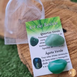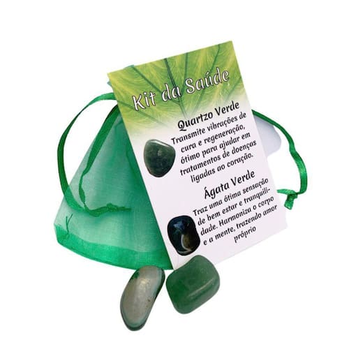 Quartzo Verde: transmite vibrações de cura e regeneração, ótimo para ajudar em tratamentos de doenças ligadas ao coração. Ágata Verde: traz uma ótima sensação de bem estar e tranquilidade. Harmoniza o corpo e a mente, trazendo amor próprio.