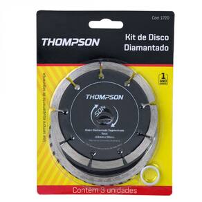 Neste kit você tem: 1 disco segmentado, 1 disco turbo e 1 disco liso. Ambiente Principal: Área de Serviço Aplicação: Alvenaria, Azulejo, Blocos de Concreto, Cerâmicas, Cerâmicas Esmaltadas Composição: Aço e Diamante Sintético Comprimento: 5 cm Diâmetro do furo: 20 mm Ergonômico: Não Função: Acabamento de peças Indicação: Utilizado para cortes em granitos, tijolos, concreto, telhas, pedras, alvenaria, pisos, azulejos, porcelanatos e mármores. Itens Inclusos: 1 Disco turbo, 1 Disco Segmentado e 1 Disco Liso Largura: 13 cm Linha ou Coleção: Kit Discos Desbastes Manual de Montagem e Instalação: https://product-hub-prd.madeiramadeira.com.br/714618/documents/239e40e7-61e3-438f-842e-5314a93c03f9898987manualdemontagem.pdf Marca: Thompson Material Principal: Aço Carbono Medida de Cada Item: 110mm Modelo: Kit 3 Discos Necessita Montagem: Não Origem do Produto: Importado Perfil: Contínuo Peso: 0,230 kg Quantidade Por Embalagem: 03 Recomendações de Uso, Manutenção e Limpeza: Pano macio Rotação: 13.800 rpm Tipo de corte: Seco Tipo de Mecanismo: Rotativo