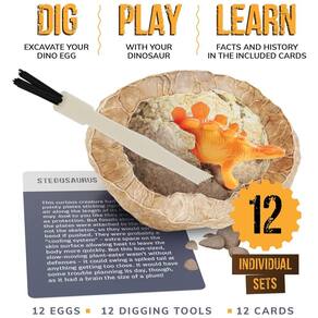 Desperte o paleontólogo que existe em você com o kit Desenterre 12 Ovos de Dinossauro Com este kit, você poderá escavar e descobrir 12 modelos exclusivos de dinossauros, como o Trex, Dilophosaurus e Ankylosaurus. Cada ovo contém um dinossauro de brinquedo exclusivo, um pincel de cinzel e um guia de instruções para que você possa desenterrá lo facilmente. Além disso, cada dinossauro vem acompanhado por um cartão de aprendizagem colorido que descreve a história e as características do dinossauro. Este kit é ótimo para brincadeiras individuais ou em grupo e é um presente divertido e educativo para todas as idades. É um projeto STEM autenticado pela organização STEM.org, que garante que atenda aos mais altos padrões de aprendizagem STEM. Tudo vem embalado em uma caixa de exibição elegante para que você possa mostrar seus dinossauros para todos os seus amigos.