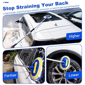 Ordenado Luva 2 em 1 de microfibra de chenille para lavagem de carro com alça longa de liga de alumínio de 157 cm, kit de limpeza de carro, espanador, escova de lavagem de carro - Escova de lavagem de carro de 162 cm com fantástica função de ajuste de comprimento?O esfregão de lavagem de carro tem 4 postes de alumínio e você vai descobrir que eles podem ser montados em 82,8 cm, 117,6 cm ou 157,5 cm usando 2, 3 e 4 polos. Portanto, o comprimento ajustável desta escova de carro para lavagem ajuda você a limpar diferentes alturas (quanto mais alta, mais longe ou a roda inferior), de qualquer maneira, protegendo você de esticar, dobrar ou torcer para fazer tudo. É uma criação legal para fãs de carros! - ?Kit de lavagem de carro esfregão de microfibra com design de conexão resistente? Não há preocupação de que a escova de lavagem de carro com alça longa seja retraída ou esticada à vontade porque cada haste do kit de lavagem de carro usa o método de fixação preso para tornar a haste do equipamento de lavagem do caminhão estável e firme. Além disso, a rotação da cabeça do esfregão de 180° e a alça antiderrapante da escova de limpeza do carro podem controlar facilmente a escova de lavagem do caminhão e ajustar o ângulo para tornar a limpeza mais conveniente. - ??Luva de lavagem de carro 2 em 1 sem arranhões de chenille para uso flexível? Quando o mastro da escova do carro é desmontado, a cabeça do esfregão de limpeza de parede pode ser usada como luva, esponja, pano para facilitar a limpeza do carro. Uma esponja macia para lavagem de carro de forte absorção funciona de forma Ordenado recolher as partículas de sujeira e sujeira, prendendo-as nas fibras da luva de lavagem sem deixar arranhões, fiapos ou redemoinhos para alcançar resultados impressionantes. - ?Kit de limpeza de carro sem ferrugem de material premium? Esta escova de limpeza com cabo longo é feita de liga de alumínio que é dura, firme e difícil de enferrujar. Além disso, quase não há dobra ou quebra da haste durante o uso. Como excelente kit de cuidados com o carro, sinta-se à vontade para usar o esfregão de parede com alça longa em ambientes internos ou externos. - ??Suprimentos de limpeza de carro de ampla aplicação? As luvas de lavagem para lavagem de carro são perfeitas para lavar, secar, encerar, tirar o pó e polir seus veículos ou casa. Você não só pode lavar um carro, caminhão, SUV, motocicleta, trailer, mas é incrível para janelas, poeira, ventiladores de teto, galpões, escorregadores infantis/estruturas externas e acessórios de sua casa! Use-o em qualquer superfície! Tamanho livre serve para todos. Ferramenta de limpeza de para-brisa interior perfeita. Torna a limpeza mais fácil, rápida e prática. - ??Pacote satisfatório e presente ideal? 4 postes de liga de alumínio, 1 cabeça de esfregão na placa de plástico ABS que é fácil de remover e limpar; 1 cabeça de esfregão de microfibra extra de chenille. Se você não sabe que presente dar aos fãs de carros ou entusiastas de carros, basta escolher o kit de lavagem de carros! Temos garantia de 12 meses, sinta-se à vontade para entrar em contato conosco quando houver algum problema de montagem ou uso.