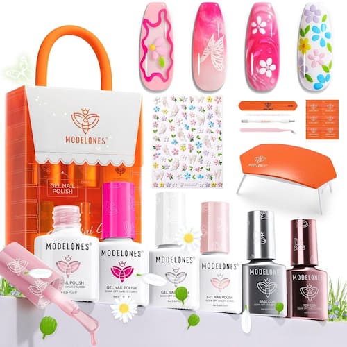 - Leve o Mini Salon para casa: o kit para iniciantes inclui lâmpada U V, esmalte de gel de 4 cores de primavera, conjunto básico de acabamento e ferramentas de preparação. Com nossa fórmula atualizada e escova ergonômica, obtenha manicures suaves e resistentes a lascas (mais de 28 dias!). Resultados do salão de beleza, conveniência doméstica