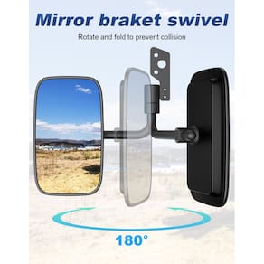 Compatibilidade: Compatível com Kubota RTV X1100C, RTV 1100; Acessórios da série X - Compatibilidade universal: Compatível com Kubota RTV X1100C, RTV 1100; Acessórios da série X - Segurança aprimorada: o espelho convexo oferece um campo de visão mais amplo, tornando a fusão e as mudanças de faixa mais seguras. - Fácil instalação: sem necessidade de configuração complicada, basta usar as porcas e parafusos fornecidos para substituir seus espelhos existentes. - Construído para durar: com uma carcaça ABS de alto impacto e revestimento resistente a arranhões, esses espelhos são construídos para suportar terrenos adversos e condições difíceis. - Ajustável para visualização ideal: a cabeça esférica ajustável e o suporte de alumínio permitem ângulos personalizáveis, garantindo visibilidade ideal durante a condução.