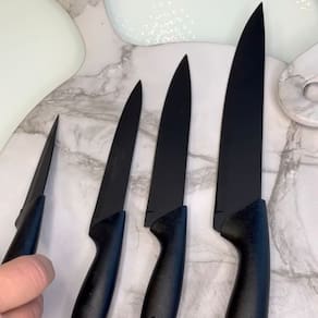 Cuidado: Evite cortar em superfícies duras, como vidro, cerâmica ou metal. Use tábuas de corte de material adequado, como madeira ou plástico, para preservar o fio da lâmina. Marca: AD IMPORTAÇÃO