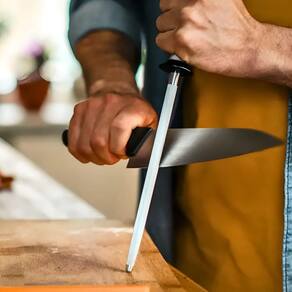 - Importância da Chaira: Para manter o fio da faca sempre alinhado e afiado, o uso da chaira é essencial. Uma chaira estriada ou lisa não só prolonga o poder de corte, mas também ajuda a manter a lâmina em ótimo estado, sem desgaste excessivo.