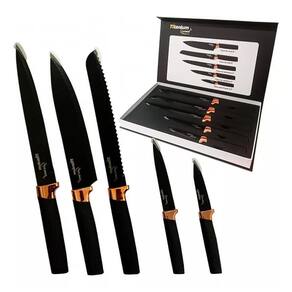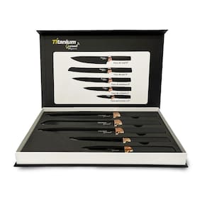 Tudo o que você procura em um só lugar A mais de 20 anos no mercado, proporcionando as melhores experiências Kit de Facas Premium Aço Inoxidável Titanium Gourmet com 5 Peças Benefícios: Se você busca por facas com bom desempenho, qualidade e elegância o Kit de facas Premium da Titanium Gourmet é a escolha certa. Pode ser utilizado em cozinhas domesticas ou profissionais. Descrição: O jogo de facas premium feita com lâmina em aço inoxidável, revestimento escuro de carbono. Faca do Chef: É utilizada para cortar filés de carne antes do preparo; fatiar carnes já assadas, fatiar peças de embutidos, como salames e queijos; picar temperos e afins. Faca Fatiadora: Utilizada para cortar files ou removes peles de peixes ou carnes. Faca para Frutas: É utilizada para picar, cortar e filetar legumes, verduras cruas ou cozidas e frutas. Faca Utilitária: Para todos os tipos de corte, mas é utilizada principalmente para fatiar e picar legumes e carnes. Faca para Pão: É utilizada para cortes de pães e massas similares. Ideal para alimentos com crosta pois não amassa. Ideal Para Tomates, Pessegos, pães e tortas recheadas. Ficha Técnica: Cabo: Plástico Lâmina: Aço Inoxidável Dimensão da Lâmina Faca de Chef: 20,3 cm Faca Fatiadora: 20,3 cm Faca para Frutas: 8,9 cm Faca para Pão: 20,3 cm Faca Utilitária: 12,7cm Todos os nossos produtos são e emitimos . Esse produto acompanha: 01 Faca de Chef 01 Faca Fatiadora 01 Faca para Pão 01 Faca Utilitária 01 Faca para Frutas Marca: Titanium Modelo: 6896 : 12 Meses Ean: 7908200009157 Será um prazer lhe atender, estamos esperando o seu pedido. Imagens meramente ilustrativas. Marca: Não Informado