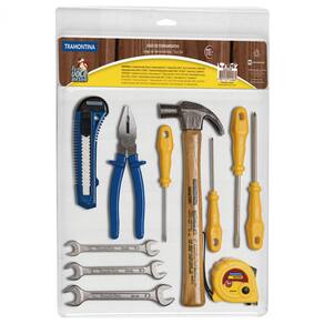 Uma vez que outra sempre precisamos de alguma ferramenta, seja uma chave ou um martelo.Com o Kit de Ferramentas Tramontina com Martelo Trena Alicate Estilete Chaves de Fenda e Chaves Fixas 11 peças você tem as peças ideais para lhe auxiliar em pequenos reparos.O kit acompanha itens que não podem faltar na sua caixa de ferramentas, oferecendo versatilidade e praticidade sempre que você precisar.Conteúdo do Jogo:Martelo de Unha 20 mm Tramontina Basic com Cabo em Madeira EnvernizadaAlicate Universal 7" Tramontina Basic em Aço Especial com Empunhadura InjetadaChave Fixa 10x11 mm Tramontina Basic com Corpo em Aço Especial CromadoChave Fixa 12x13 mm Tramontina Basic com Corpo em Aço Especial CromadoChave Fixa 14x15 mm Tramontina Basic com Corpo em Aço Especial CromadoChave de Fenda Tramontina Yellow com Ponta Chata 1/8x3"Chave de Fenda Tramontina Yellow com Ponta Chata 3/16x4"Chave de Fenda Tramontina Yellow com Ponta Cruzada 1/8x3"Chave de Fenda Tramontina Yellow com Ponta Cruzada 3/16x4"Trena Tramontina com Fita de Aço e Corpo em ABS com Freio Duplo 3mEstilete Retrátil 6" Tramontina Basic com Lâmina em Aço EspecialInformações GeraisComposição variada que oferece versatilidade na utilização do dia a dia.As ferramentas são produzidas e testadas conforme normas específicas.Recomendações de UsoUse óculos, luvas e outros equipamentos de proteção individual (EPIs) de acordo com a tarefa a ser executada.Mantenha ferramentas de corte longe do alcance de crianças.Mantenha as ferramentas sempre limpas para um melhor agarre, pois usá-las sujas com graxa ou óleo pode causar acidentes.Armazene em local limpo e seco.Respeite sua cidade e o meio ambiente, para descarte dos produtos e embalagens, siga as orientações de reciclagem vigentes.