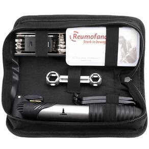As ferramentas vem em um prático estojo, leve e portátil, que pode ser preso ao quadro da bicicleta.