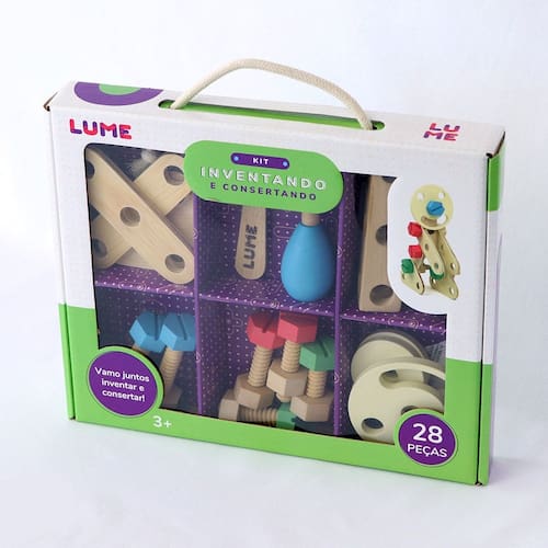 A brincadeira PROMOVE: O desenvolvimento da criatividade e da motricidade. Encaixando as peças e rosqueando parafusos podemos criar e recriar. Brincar de faz de conta de uma profissão também estimula o desenvolvimento da afetividade.