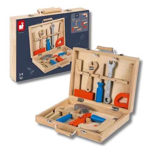 Ficha Técnica: Marca: Janod Idade Recomendada: +3 anos Dimensões Aproximadas: 29 x 6 x 23 cm Conteúdo: 1 caixa + 9 ferramentas Certificação: INMETRO 010597/2024