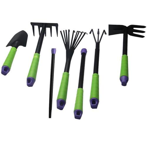 O jogo de ferramentas de jardim foi criado para cuidar de plantas, flores e pequenos arbustos ferramenta feita de aço de carbono médio e revestida a pó, Equipado com uma alça de plástico com uma tampa de rosca qualquer ferramenta no kit pode ser estendida com uma haste e cabo em 380 mm ou com um cabo - em 385 mm
