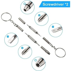 Kit de ferramentas para manutenção e reparação de óculos, inclui dois mini tornilladoresViene com diferentes longitudes e tamanhos de parafusos que se adaptam às óculos mais comuns, incluindo óculos de sol, óculos sem montagem, óculos sem montagem e óculos com monturAno solo para fixar óculos e gafas de sol, sino también para outros artigos que requerem parafusos pequenos, como relógio, telefone móvel, controle remoto, relógio, etc.Un práctico kit de dispositivos, que vem com um destornillador micro 4 em 1, un destornillador micro 3 em 1 y una pinza que está especialmente desenhada para sujetar el tornillo firmemente.Hecho de acero inoxidable compuesto de alta calidad, antioxidante, duro y permite una larga vida útiTiene 10 pares de almohadillas nasales universales que pueden adaptarse a la mayoría de las gafas, también tiene un Par de ganchos antideslizantes de silicona, sin sensación dor de oídos após seu uso, E incluso se olvidará de llevarlo.El paquete incluye:Tornillo de aproximadamente 400 Uds1 destornillador micro 4 en 11 destornillador micro 3 en 11 x pinzas1 par de ganchos antideslizantes10 pares de almofadas nasais universales1 x pano de limpeza de microfibra1 x Caixa de armazenamento transparente