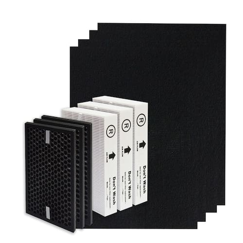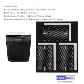 PUREBURG Kit de filtro HEPA verdadeiro de substituição compatível com purificadores de ar Honeywell InSight, HPA5300B / HPA5350 e PowerPlus HPA3300, HRF-R3 (filtro R), HRFSC1(filtro S), HRF-A300(filtro A), HRF-ARVP300 Modelo compatível: Honeywell InSight HPA5300B Honeywell InSight HPA5350 Honeywell PowerPlus HPA3300 Número de peça compatível (P/N): HRF-R3 x 1 pacote = (HRF-R1 x pacote com 3) - (filtro HEPA verdadeiro, filtro R) HRFSC1 * Pacote com 3 (filtro de aprimoramento, filtro P) HRF-A300 * Pacote com 4 (pré-filtro de carbono, filtro A) Isenção de responsabilidade: este produto é um item genérico projetado para substituir a peça autêntico. Quaisquer nomes de marcas ou logotipos são marcas registradas de seus respectivos proprietários. Qualquer uso de qualquer marca ou designação de modelo para este produto é feito exclusivamente para fins de demonstração de compatibilidade. PUREBURG - Pure Your Breath! Valorizamos sua satisfação. Se você tiver algum problema ao usar nosso produto, sempre . - ? Kit de filtro de substituição de alta qualidade – 3 filtros HEPA verdadeiros + 3 filtros de aprimoramento + 4 pré-filtros de carbono - ? Totalmente compatível com purificadores de ar Honeywell InSight HPA5300B / HPA5350 e PowerPlus HPA3300, número de peça HRF-R3 HRFSC1 HRF-A300 e HRF-ARVP300 - ? O HEPA verdadeiro H13 captura 99,97% das poeiras transportadas pelo ar PM2,5 até 0,3 mícrons de tamanho. Remove partículas grandes e transportadas pelo ar, incluindo poeira, poluentes comuns, aumento + pré-filtro de carbono reduz COV de produtos químicos, fumaça de tabaco, mau cheiro doméstico comum - Substitua regularmente para manter sua máquina fresca e limpa. Para melhores resultados, remova o filtro uma vez por mês e limpe com uma escova macia ou aspire suavemente. - ? Qualidade superior usada para máxima satisfação do cliente garantida, troque o filtro de substituição PUREBURG em minutos, sem necessidade de ferramentas. Observação: remova o novo filtro do saco plástico antes de colocá-lo nele.