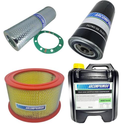 Kit de Filtros e 20L de Óleo Lubrificante Similares para o Compressor Rotativo de Parafuso Chiaperini Copa 30 G2. O kit contém: