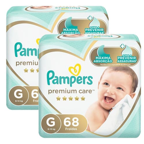 FRALDA PAMPERS PREMIUM CARE TAMANHO G A Fralda Pampers Premium Care é suave como o algodão, apresenta loção hipoalergênica com canais de ar ultra respirável, mantendo a pele do bebê sempre sequinha. Até 12 horas de proteção. Modo de usar: Coloque o bebê sobre a fralda. Desgrude as fitas e puxe-as. Grude as fitas sobre a faixa decorada. Ean: 7500435132442