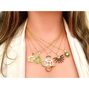 Kit de gargantilha folheada a ouro 10un o que você irá receber ao adquirir este kit: - 10 colares semijoias - comprimento: 42 cm - diâmetro: 13,5 cm - cor: dourado - peso: de 4 a 7 gramas cada colar obs: modelos , sem opção de escolha. São colares de luxo com pedrarias, strass e berloques com revestimento em ouro 18k + verniz de alta qualidade. - 10 certificados de garantia todos os produtos acompanham certificado de garantia e instruções de uso embalados individualmente. - 10 embalagens para presente vender da melhor forma possível gera mais vendas, por isso você irá receber 10 embalagens para presente e se destacar ainda mais em suas vendas. Benefícios: - qualidade e beleza incomparável - garantia de 1 ano - embalados com super proteção - acompanham etiqueta de preço para revenda - pedras cristais e zircônias - preço acessível - toda assistência da compra até o término da garantia recomendações de uso: evite o contato com produtos químicos o ouro 18k da semi joia é uma folheação e não uma peça maciça em ouro. Por isso evite o contato das peças com produtos químicos e de limpeza em geral, é indicado que você retire sua peça ao manusear estes produtos. Não passe perfume quando estiver com a peça o perfume se for aplicado diretamente na peça, pode acabar com o tempo danificando a semi joia por conta da presença do álcool em sua composição. O mais indicado é aplicar o produto e só depois de alguns minutos colocar sua semi joia favorita. Limpe com sabão neutro e água como produtos de limpeza podem prejudicar a peça, o ideal é que ela seja lavada com sabão neutro e água pura. Este tipo de limpeza é aconselhado para o cotidiano. E funciona bem na eliminação de gorduras. Não esqueça de secar bem, nesse caso você pode usar um secador de cabelo. = lustre com uma flanela procure por uma flanela para lustrar suas peças com segurança. Um possível escurecimento de oxidação causado por ácido úrico, produtos químicos ou forte incidência de luz pode ser facilmente removido com ajuda de uma flanelinha limpa. Guarde com cuidado na hora de armazenar suas semijoias escolha sempre um local limpo e seco. É importante evitar exposição exagerada ao sol, umidade, luz, contato com materiais perfumados e materiais tingidos. Rl store todos os nossos produtos são fabricados e escolhidos a dedo, seguindo sempre as principais tendências de moda. Além do banho em ouro 18k com verniz trabalhamos com ródio negro e branco. Nossos produtos tem uma linha completa de pedras cristais e zircônias e os nossos acessórios são continuamente renovados seguindo as principais tendências da moda. Marca: Renata Lucchetti Store